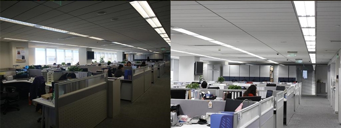 中化招标办公区域节能改造前后对比 自今年年初开始,中化集团下属中化国际招标责任有限公司(简称中化招标)对办公区域的传统荧光灯进行LED灯改造,该项目由中化招标下属中化节能环保控股(北京)有限公司(简称中化节能环保)负责实施。 经过三个月的实测数据验证,LED灯节能率达50%以上,而且光照度更高,色彩还原真实自然,寿命是普通荧光灯的6倍,同时LED灯不含汞等对环境有害的物质,可回收再利用。下一步,中化节能环保还将为中化集团总部和中化集团下属中国种子集团有限公司的办公楼层实施LED照明改造项目,进一步推广绿色环保的效果。 |