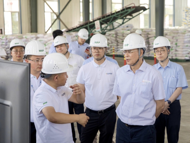 李凡荣表示,中卫资源丰富,产业特色鲜明,营商环境良好,发展潜力巨大。经过多年发展,中国中化与中卫形成了良好的互信合作关系,在新材料、新能源等领域展开了广泛深入合作。中国中化将继续支持企业在中卫发展,加大投资力度,拓展合作空间,延伸产业链条,持续推动产业转型升级,助力中卫实现“碳达峰、碳中和”目标,加快推动中卫经济社会高质量发展。 张利对中国中化长期以来关心支持中卫发展表示感谢。他表示,中化中卫循环经济产业园项目体量大、效益好,对带动中卫产业转型升级、促进绿色发展发挥了示范引领作用。中卫市委、市政府将全力以赴为中国中化在卫企业及项目提供全方位保障,不断拓宽合作领域,持续优化营商环境,为企业及项目发展提供优质服务,推动双方合作不断迈上新台阶,为全面建设社会主义现代化美丽新宁夏贡献中卫力量。 在宁期间,李凡荣还先后来到先正达集团中国MAP粮作宁夏贺兰技术服务中心、扬农瑞泰、宁夏锂电材料等单位,调研企业生产经营、战略转型推进情况,看望慰问一线干部职工,并就下一步工作提出具体要求。 8月1日,李凡荣一行来到先正达集团中国MAP粮作宁夏省区贺兰技术服务中心调研,深入了解MAP业务在当地发展情况。他强调,习近平总书记提出“攥紧中国种子,端稳中国饭碗”,这就是先正达集团中国的使命和工作主线。先正达集团中国以MAP服务模式为抓手,探索现代农业综合解决方案,把“端稳中国饭碗”这件事做细、做实。