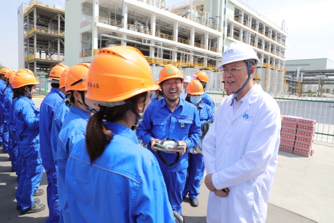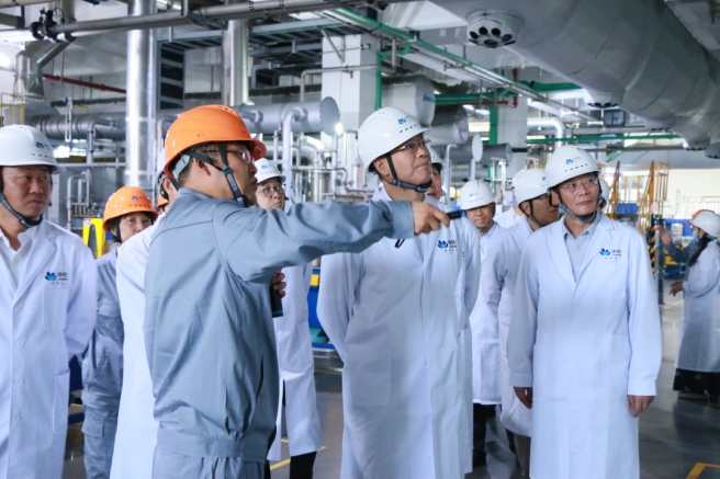 8月2日,李凡荣一行来到扬农瑞泰、宁夏锂电材料,先后调研了宁夏锂电材料检测中心、锂电材料生产车间和扬农瑞泰工程技术中心、智能控制中心、碳减排中心、尼龙66生产车间等功能区,详细了解两家企业的生产流程、生产工艺、创新研发、人才队伍、节能减排、安全生产等方面情况。调研中,李凡荣看望慰问生产一线干部职工,了解一线职工对生产生活、未来发展的关切,并送上防暑降温慰问品。