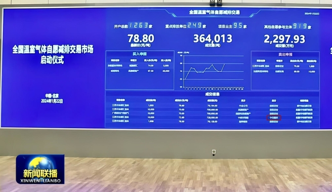 1月22日,全国温室气体自愿减排交易市场(CCER市场)启动仪式在北京举行。中共中央政治局常委、国务院副总理丁薛祥出席活动,宣布全国温室气体自愿减排交易市场启动。 启动仪式现场共展示五笔碳交易,其中包括中国中化旗下中化能科碳资产运营有限公司(简称“中化能科碳资产”)完成的1万吨碳汇造林CCER交易,可用于抵消生产环节中1万吨温室气体排放。